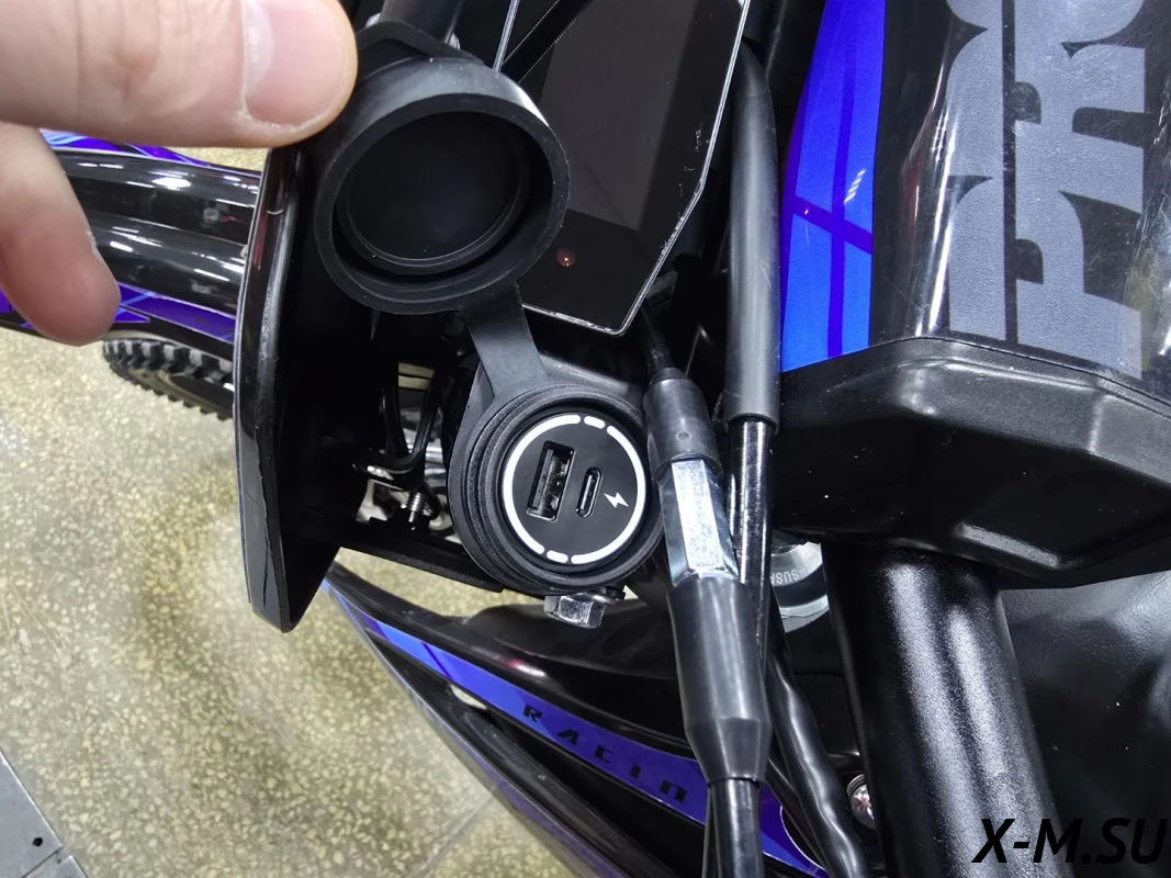 Многофункциональная приборная панель со спидометром, тахометром, одометром, индикатором передач и заряда батареи. Влагозащитные разъемы подключения приборной панели, блоков управления и кнопок старт/стоп.
